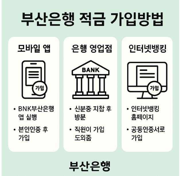 오늘은 부산은행(BNK) 적금 상품 가입 방법을 창구, 앱, 인터넷 방식으로 나누어 쉽게 설명해드릴게요.